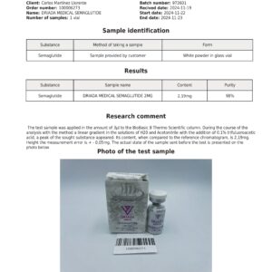 Composizione: Semaglutide 2 mg Categoria: Peptide Indicazione: Controllo del peso corporeo e modulazione dell’appetito Forma farmaceutica: Flaconcino contenente 2 mg di polvere liofilizzata con fiala separata da 1 ml di acqua per preparazioni iniettabili, destinata alla ricostituzione Via di somministrazione: Iniezione sottocutanea