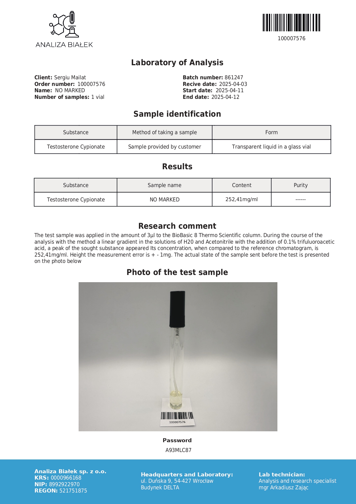 Para quienes buscan cipionato de testosterona de calidad verificada, los productos Driada se someten a numerosas pruebas de laboratorio, que pueden consultarse directamente en el sitio web oficial. Driada opera como una tienda online basada en la transparencia y la fiabilidad, con el objetivo de construir una relación duradera y basada en la confianza con sus clientes.