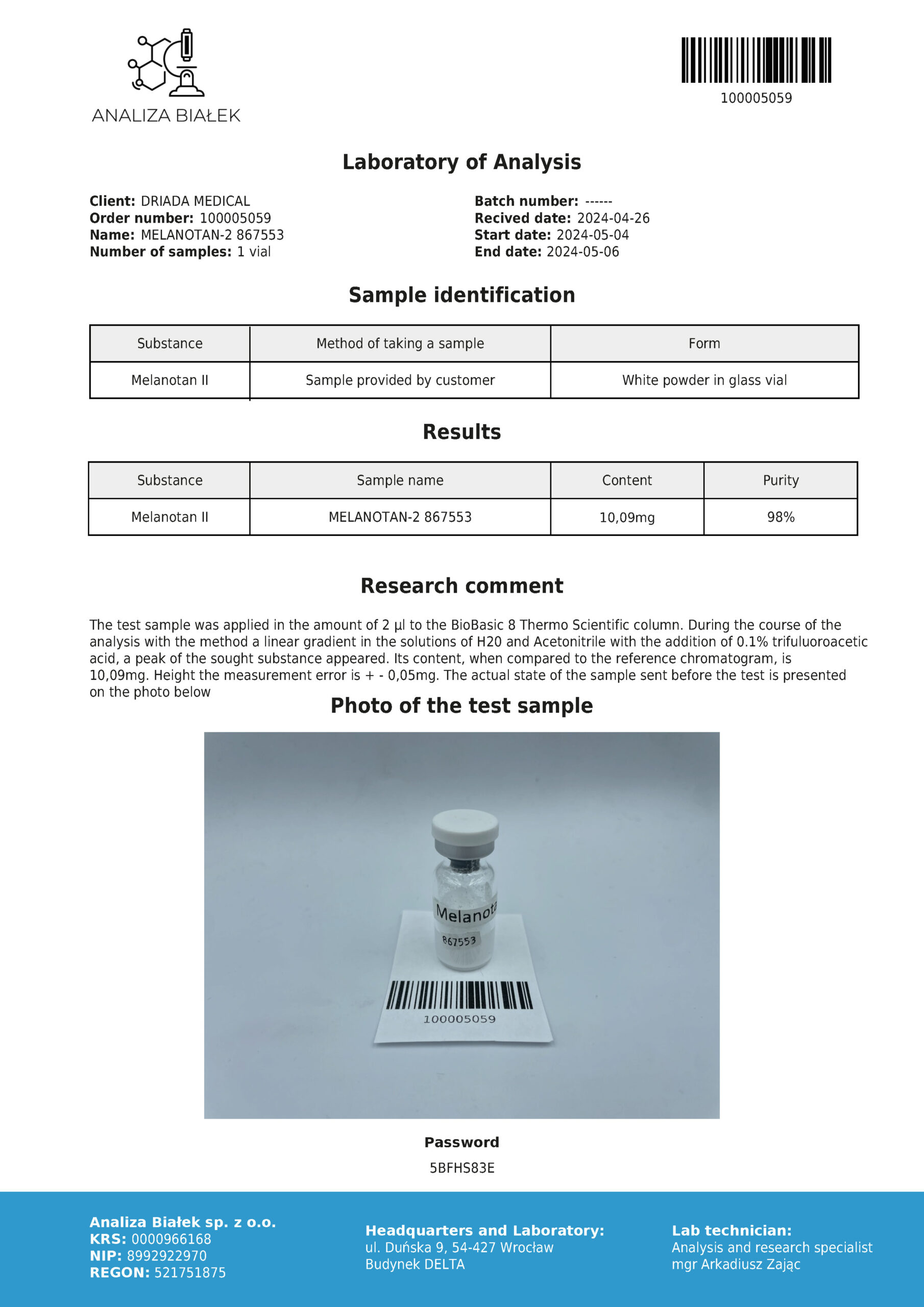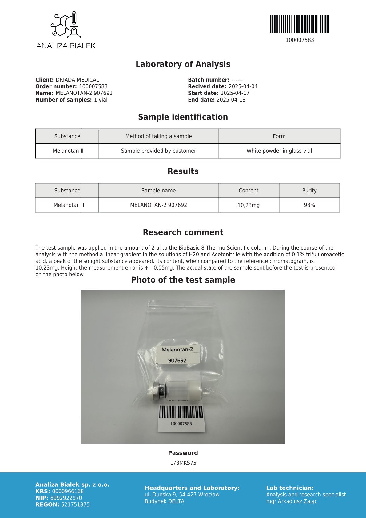 Composición: Melanotan II – 10 mg