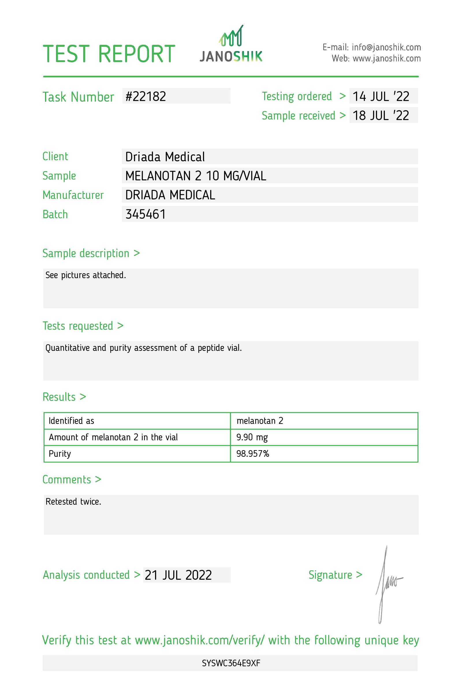 Finalidad de uso: Estimulación e intensificación del bronceado, apoyo a la libido, modulación del apetito