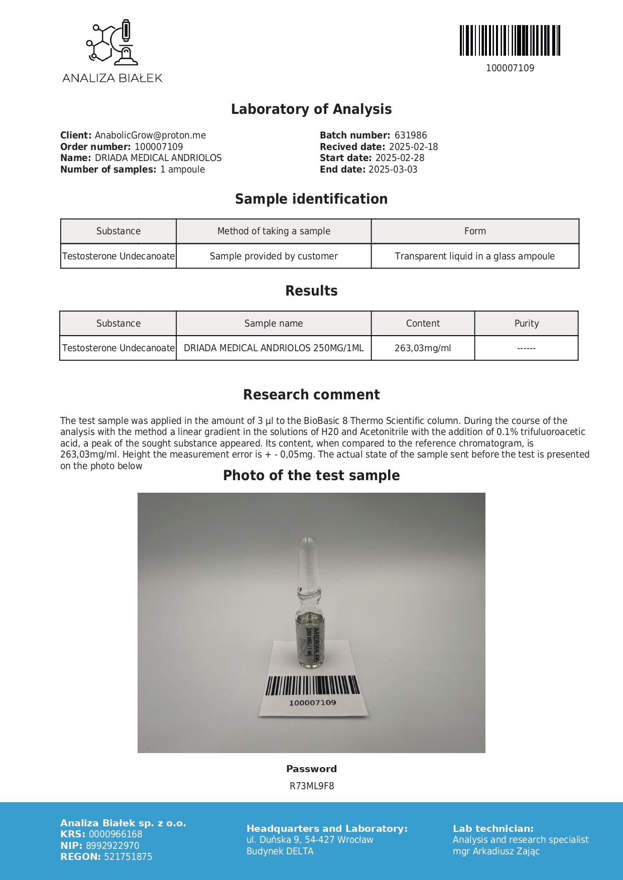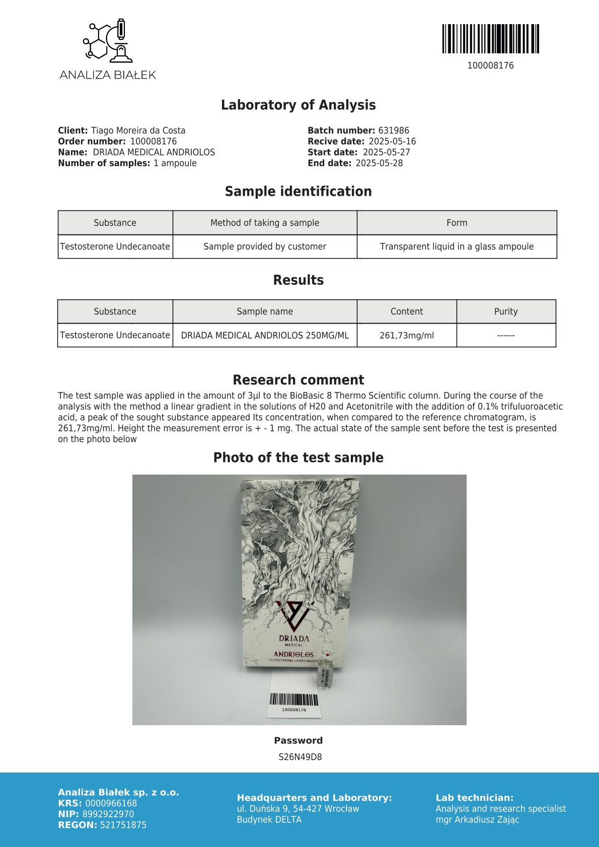 Andriolos 250 mg/ml (Testosterone Undecanoato) 10ml vial