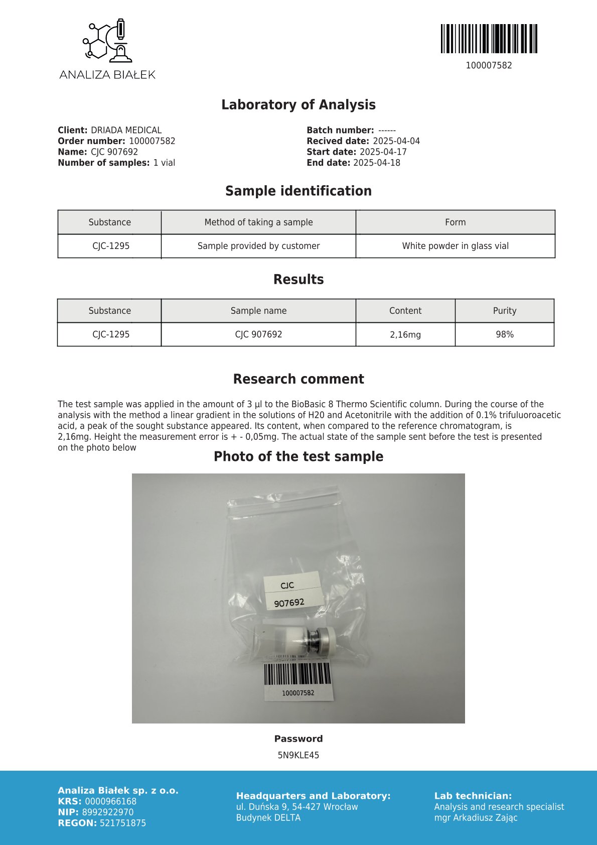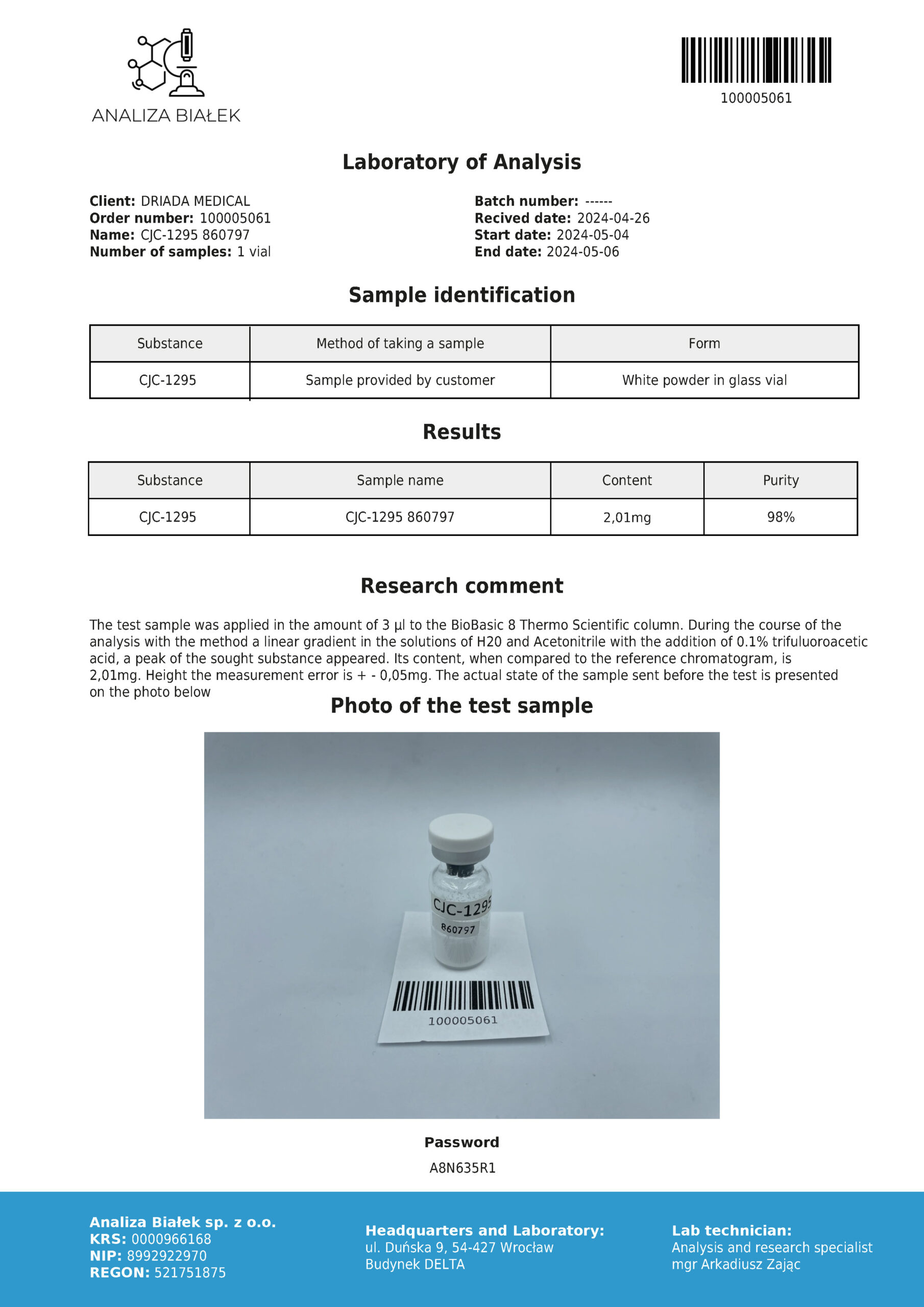 Il CJC-1295 con DAC è fornito in polvere liofilizzata (2 mg) e va ricostituito con acqua per preparazioni iniettabili prima dell’uso.