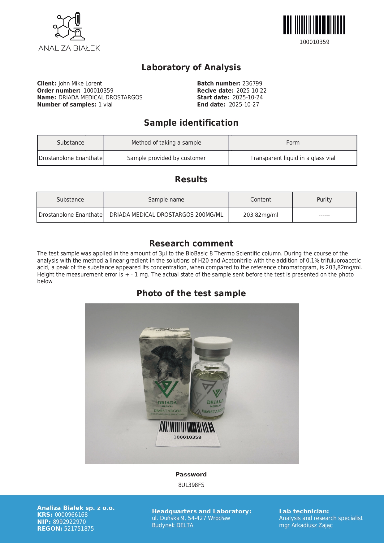 Drostargos 200 mg/ml (Drostanolone Enantato-Masterone Enantato)