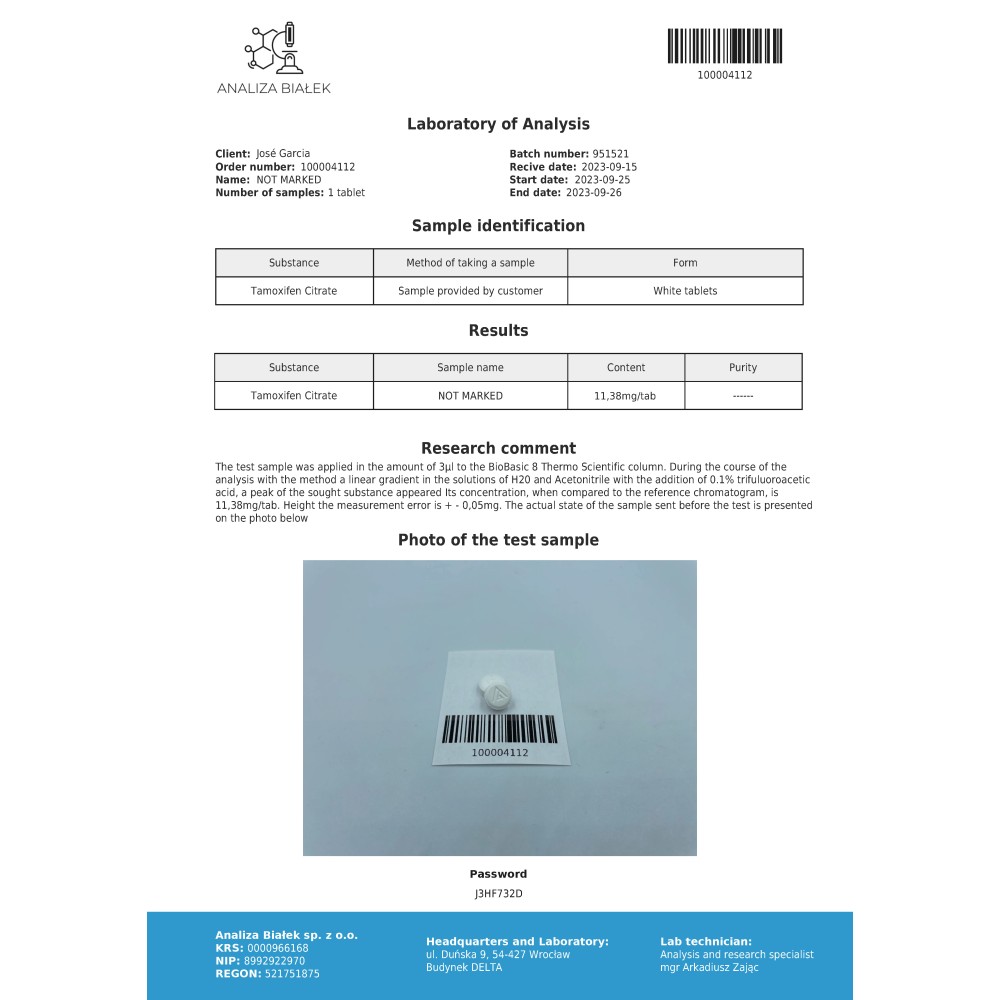 | Sostanza | Tamoxifen 10mg/pastiglia (assunzione orale) |