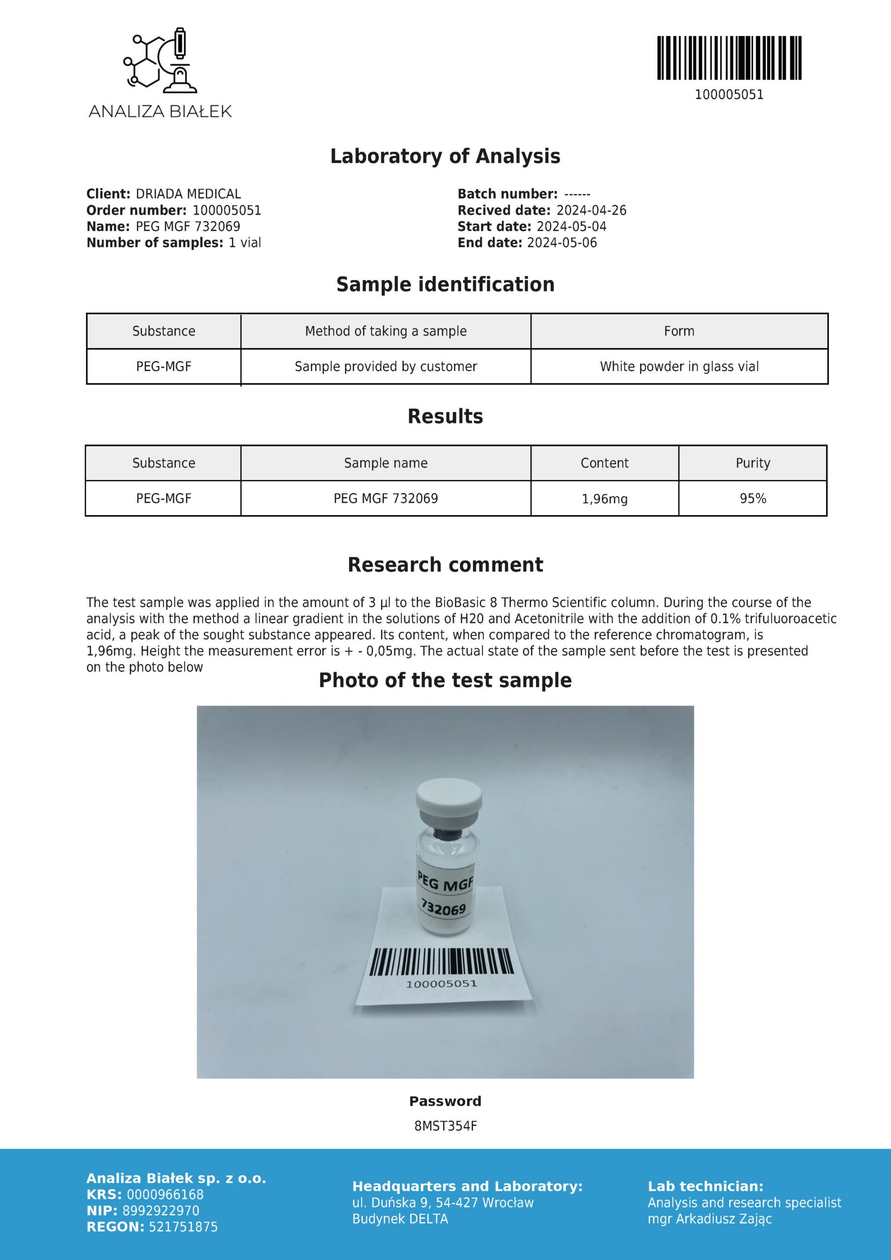In sintesi, PEG-MGF rappresenta l’evoluzione naturale dell’MGF, rendendolo finalmente utilizzabile in modo efficace grazie a una durata d’azione prolungata, una maggiore stabilità e un potenziale rigenerativo superiore.