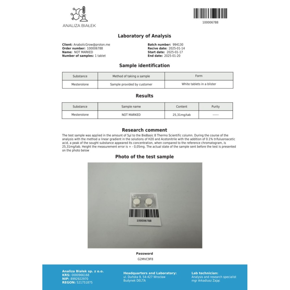 | Sostanza | Mesterolone 25mg/pastiglie (assunzione orale) |
