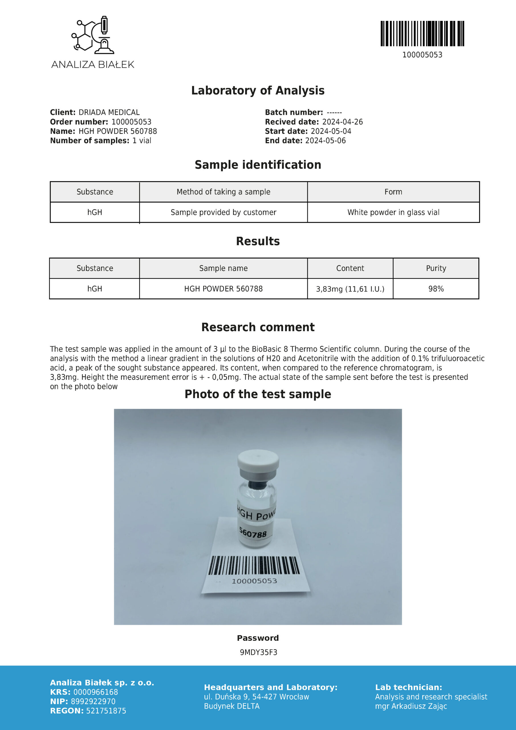 Polvere di Somatropina GH – Ormone della crescita